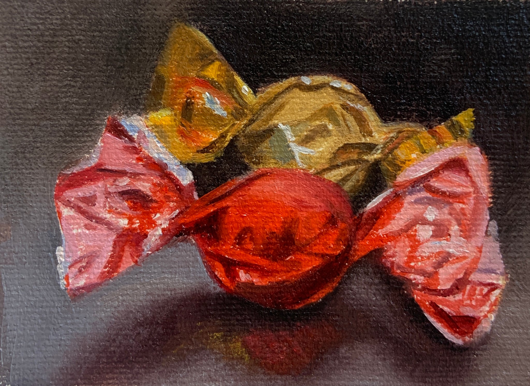 Chocoholic, original oil painting, mini size- 2.5" x 3.5" framed